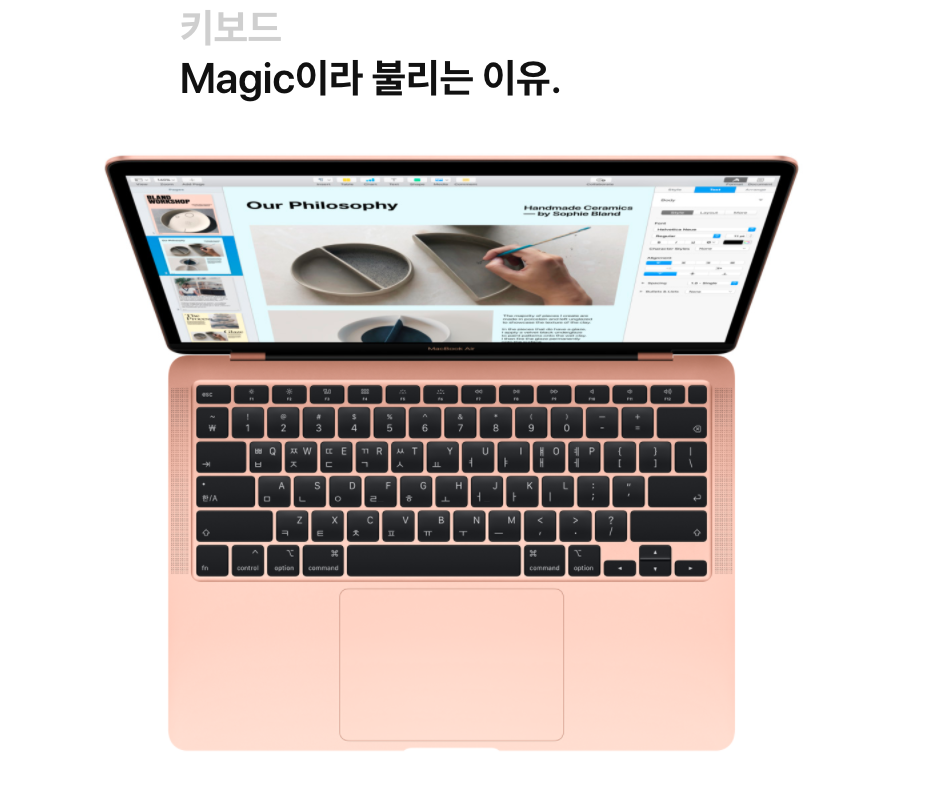 이런 문제점을 애플도 인지했는지 맥북 프로 16인치부터 다시 가위식 키보드로 바꾸더니 드디어 맥북 에어도 다시 가위식 키보드로 돌아왔습니다.