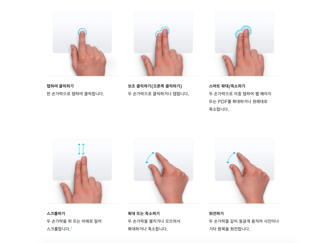 맥북의 트랙패드는 정말 환상적입니다. 윈도우 노트북의 경우 트랙패드는 "마우스가 없을 때 마지못해 쓰는 것"이라는 생각이 들 정도로 좋은 트랙패드가 거의 없습니다. 하지만 맥북의 경우 감도와 제스처 기능이 잘 돼있기 때문에 마우스가 필요 없어도 될 정도입니다.